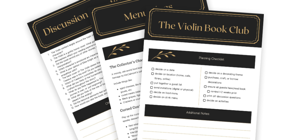 The terrifying events of The Violin culminate in a moonlit cemetery on All Hallows’ Eve, making it the perfect Halloween read. That’s especially true if you want something a little more moody than gory. (No shade to gory!)